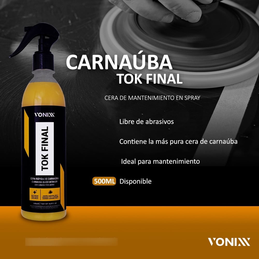 TOK FINAL fue desarrollado con la más pura cera de carnauba de Ceará y polímeros de última generación, que protegen y realzan el brillo de la pintura automotriz. Es ideal para utilizar después del lavado y para mantener la protección de la pintura del vehículo entre encerados. Se puede aplicar a cualquier parte del vehículo, incluidas ventanas, parachoques y gomas.