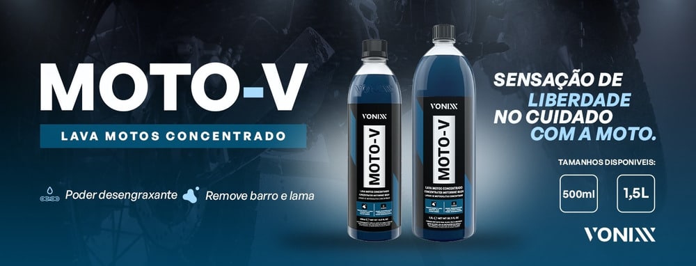 Moto-V es un lavado de motos, desarrollado para una limpieza de alta eficiencia. Su formulación equilibrada permite su uso, sin dañar, en todas las partes de la motocicleta, ya sea motor, pintura, metales o plásticos. Posibles diluciones del producto permiten eliminar los más diversos tipos de suciedad, como arcilla, barro, grasas y aceites.