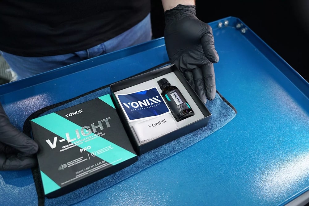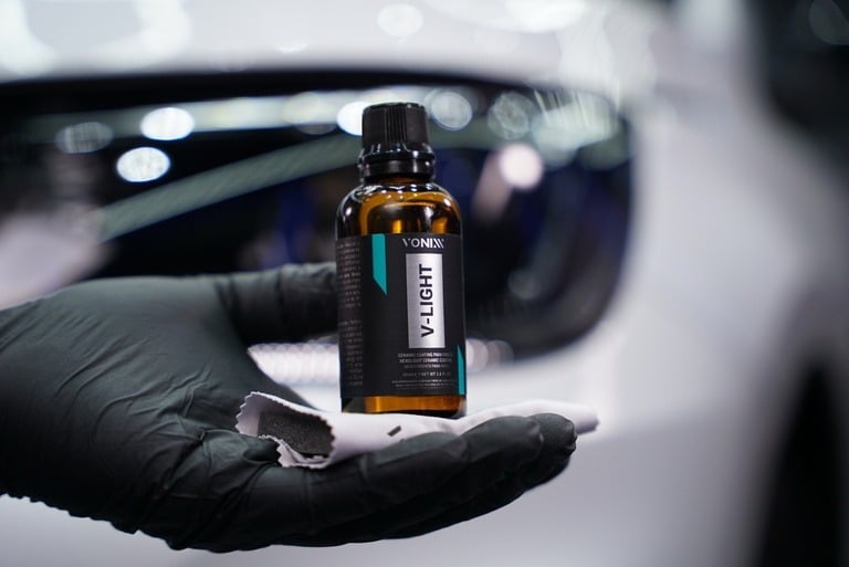 V-Light Pro es un recubrimiento de alto rendimiento a base de dióxido de silicio, especialmente desarrollado para restaurar faros fabricados en policarbonato que han sufrido oxidación con el tiempo. El producto forma una película vítrea, semiflexible, de gran transparencia y resistencia, que soporta la expansión que sufren los faros de policarbonato con las variaciones de temperatura, sin correr el riesgo de volver a agrietarse o amarillear con el tiempo.
