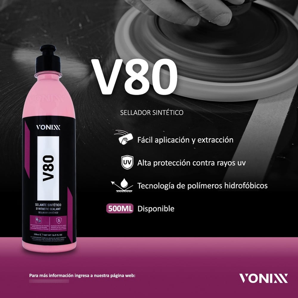 V80 es un sellador sintético desarrollado para brindar alta protección y poder hidrofóbico a la pintura del vehículo. Su fórmula exclusiva ayuda a eliminar pequeñas imperfecciones y promueve un brillo húmedo y profundo en la pintura.